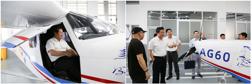 随后,在飞机维修实训基地,洪长春副厅长登上实训设备机进行试乘体验,并详细了解该机型的时速、操作系统等信息。