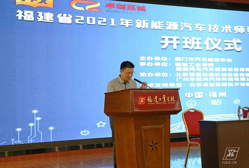 盛夏时节,万物丰茂。我校迎来了省内外73名职业院校的领导老师齐聚一堂,开展为期一周的福建省2021年新能源汽车技术师资培训。7月18日上午,开班仪式在综合楼十二楼会议室如期举行,由杨尊东副校长主持。