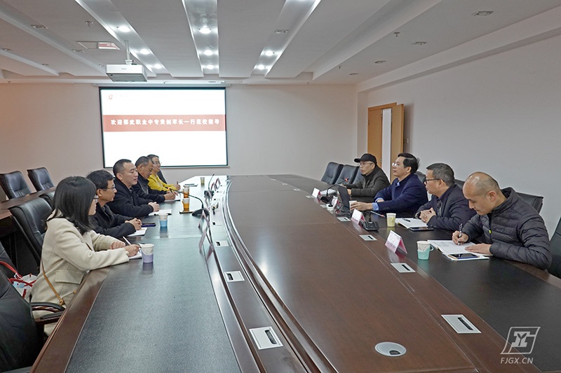 2021年12月2日上午,邵武职业中专学校黄剑军校长一行六人莅临我校参观交流。双方在综合楼10楼会议室召开座谈会,我校校长林俊标、汽车专业教学部主任余茂生、信息专业教学部副主任黄河、校办公室副主任李治泉出席会议。