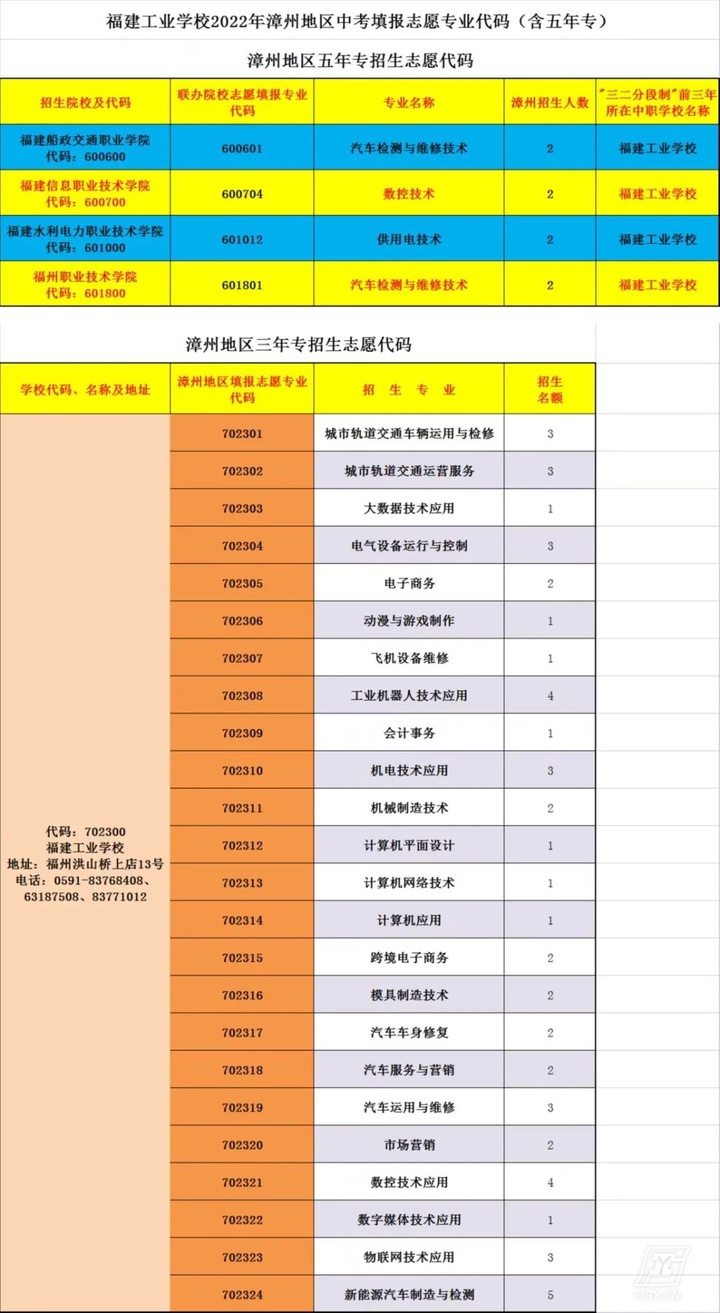 华体会在线平台2022年漳州地区中考填报志愿专业代码(含五年专)