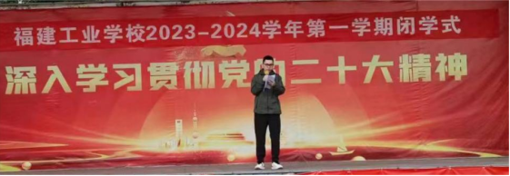 学生科科长李旭东老师进行了总结讲话。他强调,期末考试即将来临,希望同学们抓紧时间温书迎考,同时也要重视身体健康,保持强健的体魄,努力在考试中取得佳绩。他提醒同学们要提前规划好归家时间,以防错过车次;居家期间务必重视用电防火安全。最后,他祝愿大家度过一个平安愉快的假期。