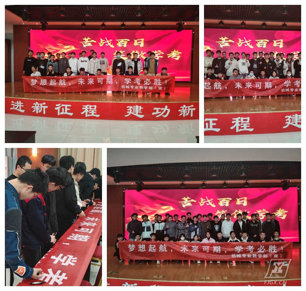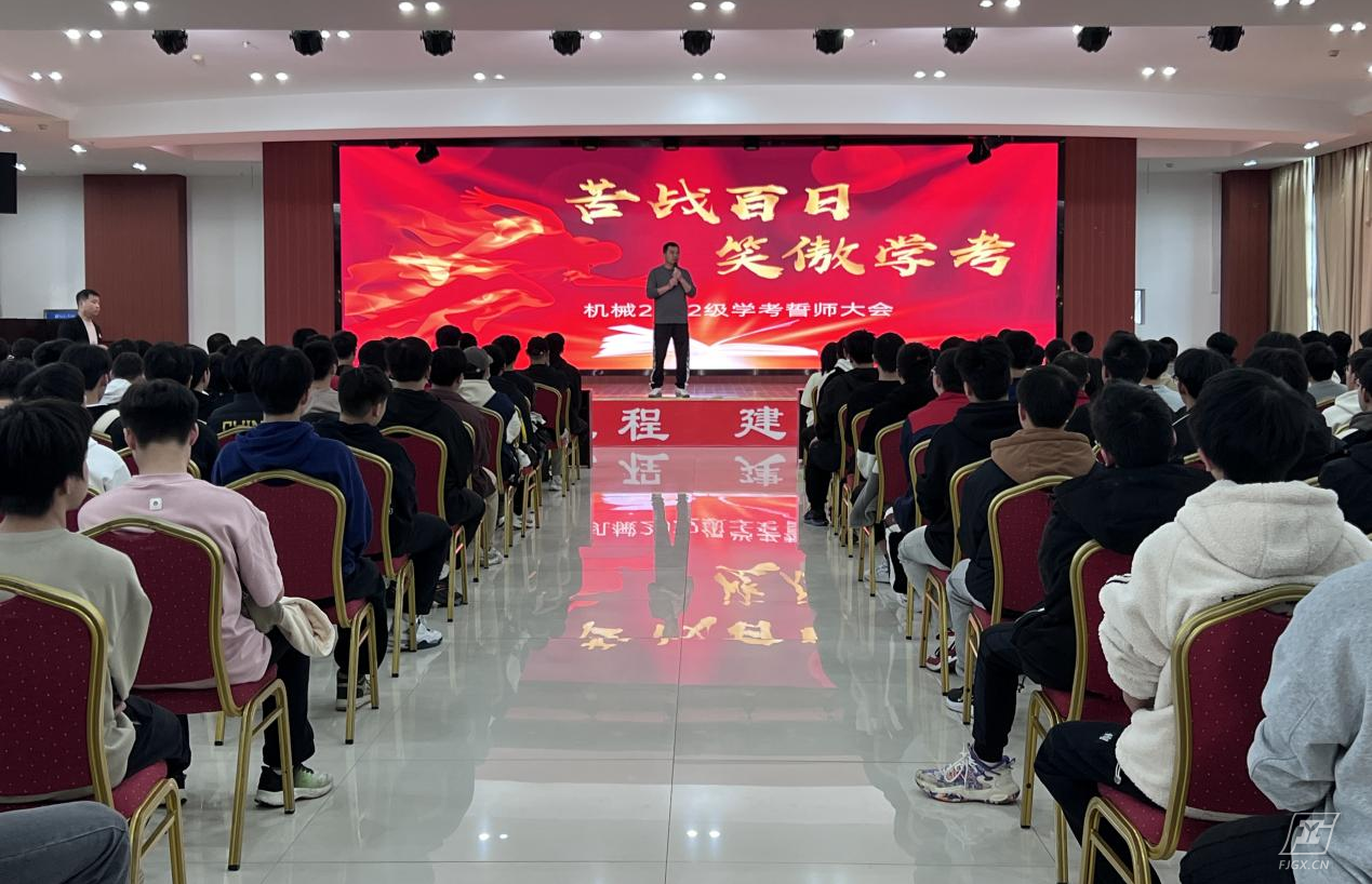 百日誓师凌云志,勇毅前行正当时。为进一步增强22级学生学习积极性,更好备战学业水平考试,3月20日下午,机械专业教学部在综合楼12层开展22级学考冲刺誓师大会。机械专业教学部副主任张文祥、22级班主任及22级全体学生参加。