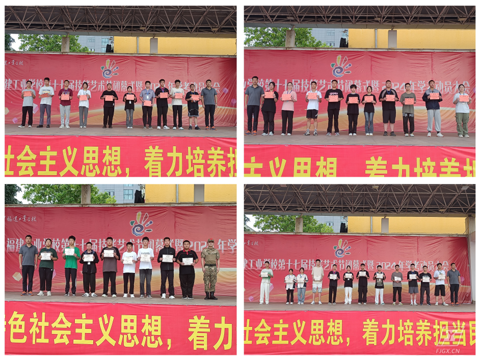 会上还对荣获一等奖学金、“技能之星”、“节约之星”、“诚信之星”以及在叠被子比赛和相声比赛中表现出色的同学们进行表彰。学生与保卫科科长李旭东、教官为获奖同学颁发奖状。