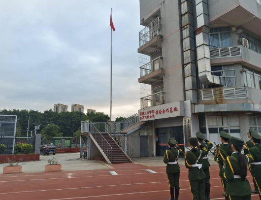 伴随着庄严肃穆的国歌声,鲜艳的五星红旗徐徐上升。大晨会在升旗仪式中拉开了序幕。