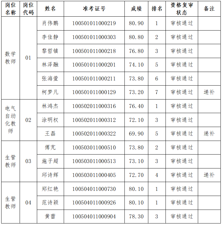 四、华体会在线平台通过资格复审拟参加面试的考生名单